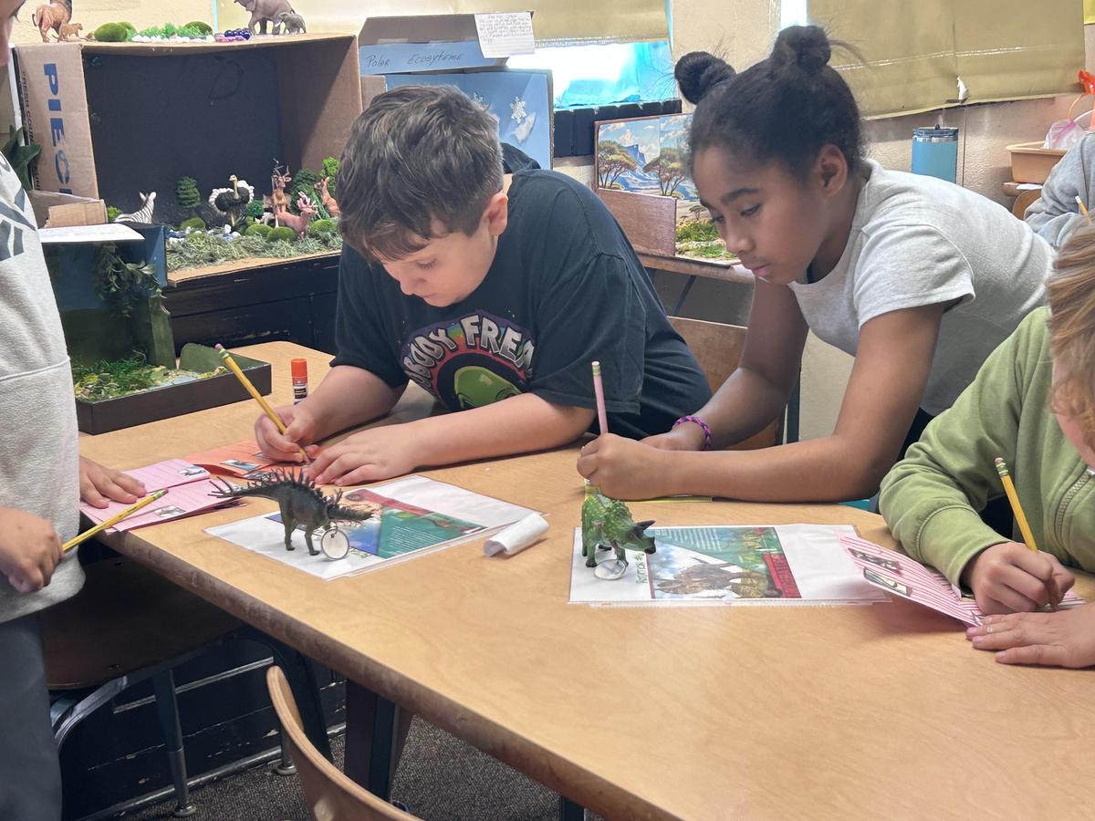 This week, we expanded the unit by integrating dinosaurs into our study of fossil fuels. Students participated in dinosaur rotations focused on animal traits and adaptations. During rotations, we played a video with dinosaur sounds so students could better imagine what life may have been like during that era. The engagement level was high because students were immersed in the experience. Students also created their own dinosaurs out of playdough. They modeled how fossils are formed and explained the process to their peers. Using mini dinosaurs pressed between layers, they demonstrated how fossils are created over time through pressure and sediment. They were not simply memorizing information. They were demonstrating understanding.