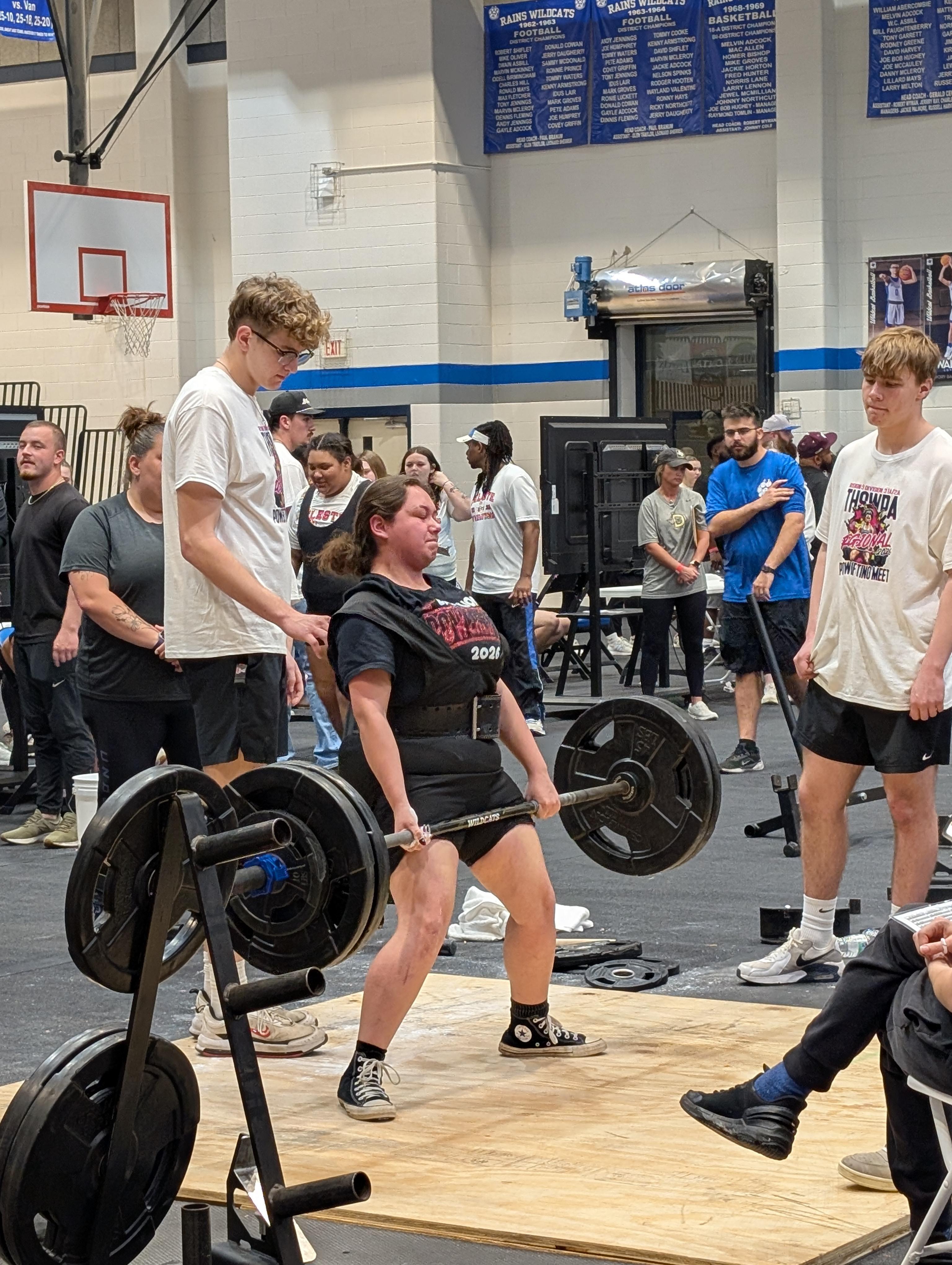 Kynleigh Peery competed in the 181-pound weight class and finished 10th with a total of 610 pounds. She showed determination and continued to compete on every lift.