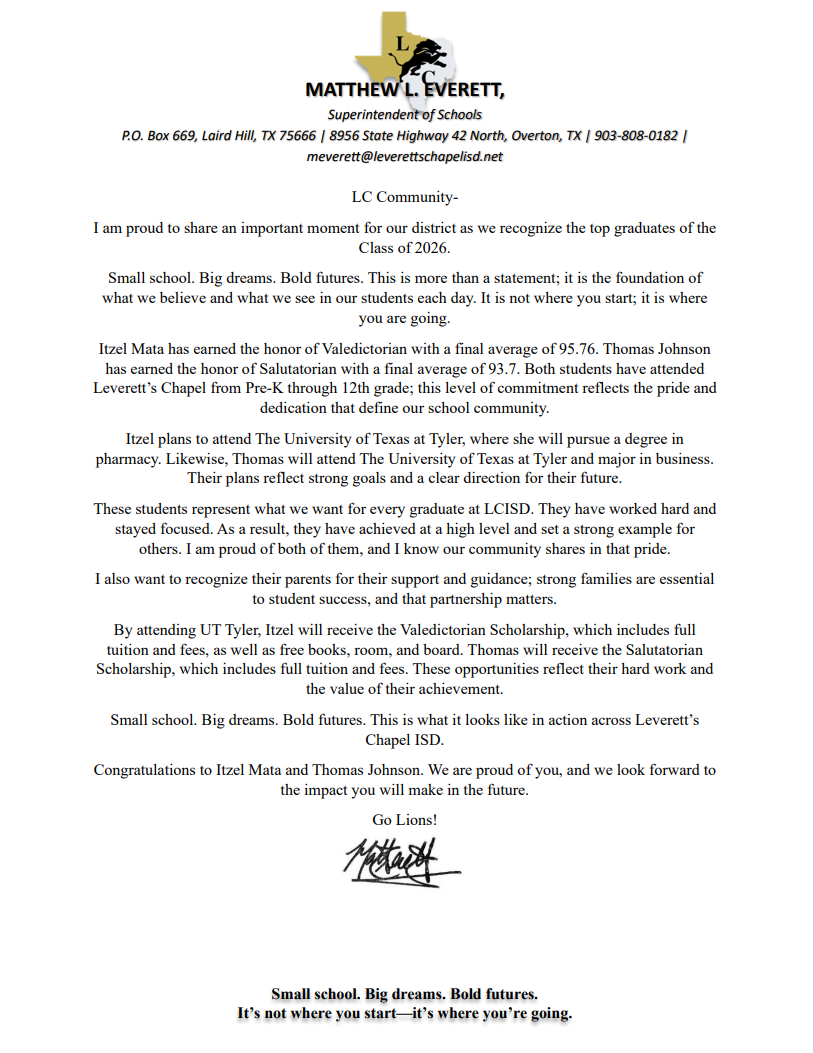 Congratulations to our Valedictorian and Salutatorian.